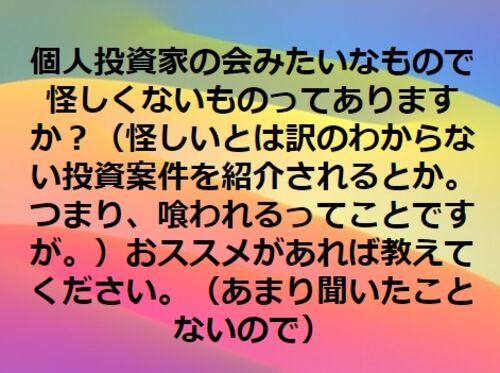フェイスブックの投資グループに入っていまして、そこでグループ向けの質問に というのがありました。 自分はツイッターもやってて、そこまでフォローしたりされたりしないアカウントですが、ちょくちょくどこかでオフ会やったみたいなツイートも流れてきて …